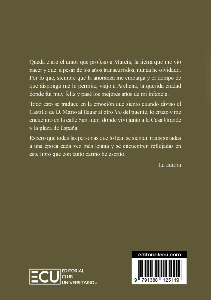 Espero que todas las personas que lo lean se sientan transportadas a una época cada vez. más lejana y se encuentren reflejadas en este libro que con tanto cariño he escrito.